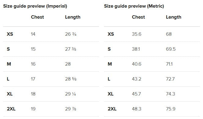 | CHEST (inches) | LENGTH (inches) | |