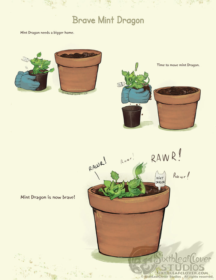 Little Minty The Mint Dragon is brave in its new potted plant home! Will you give it some water to grow?