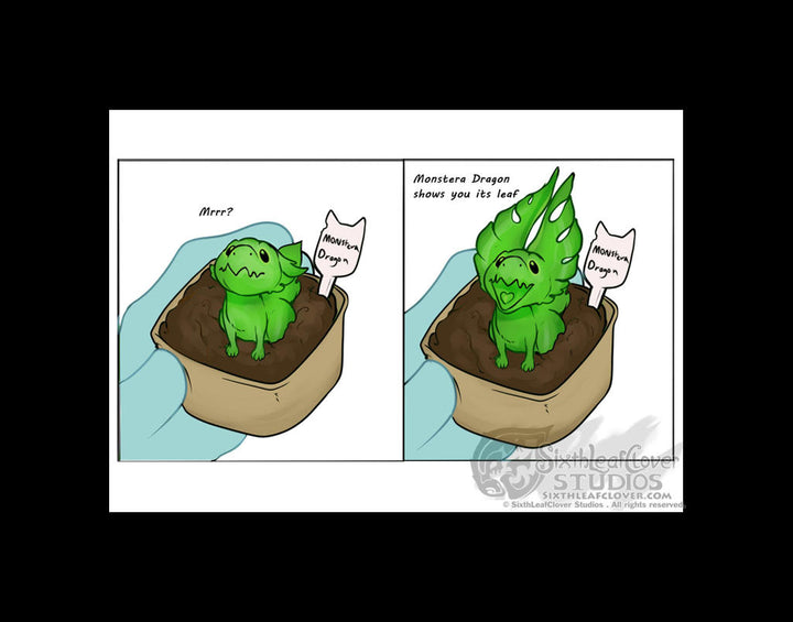 The little Monstera Dragon is very proud of its leaf and would like to show you it.