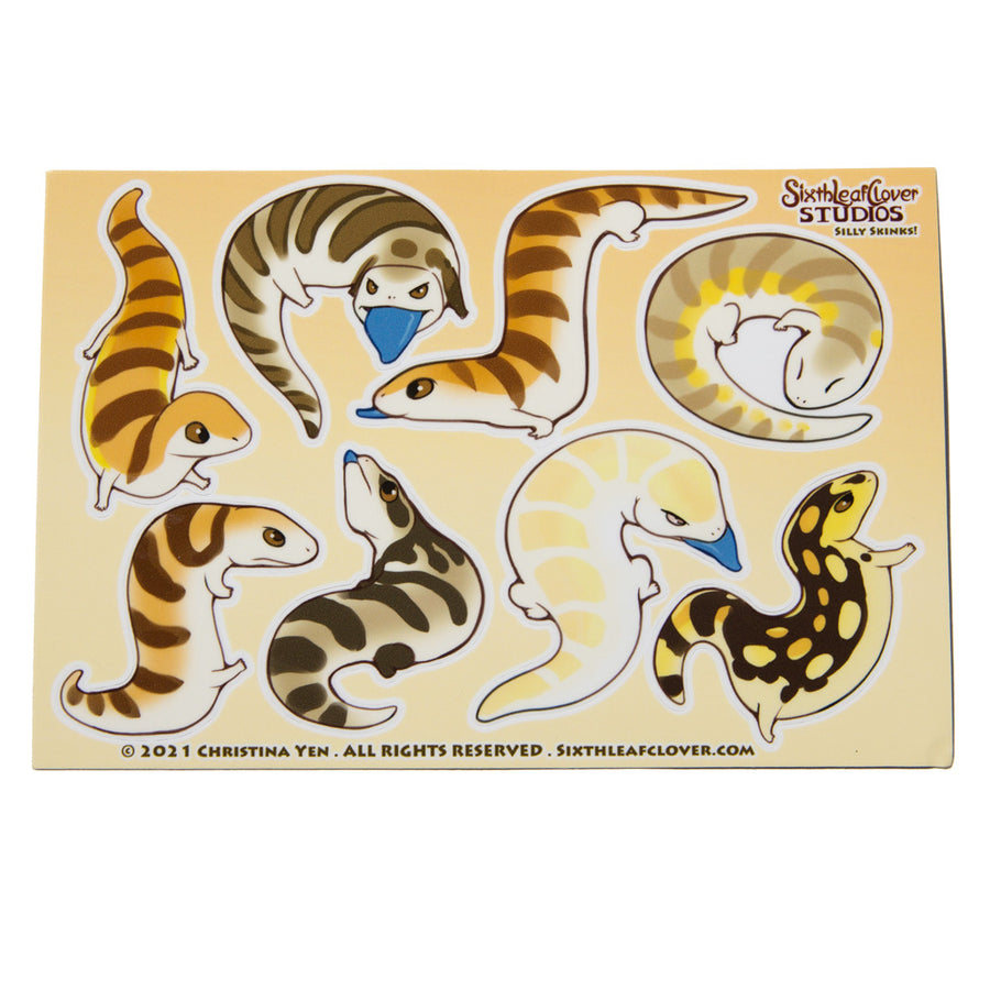 Blue tongue skinks get into just about everything, even places we wonder how they got there! Stick these skinks all over the place! You get 8 stickers in one sheet!